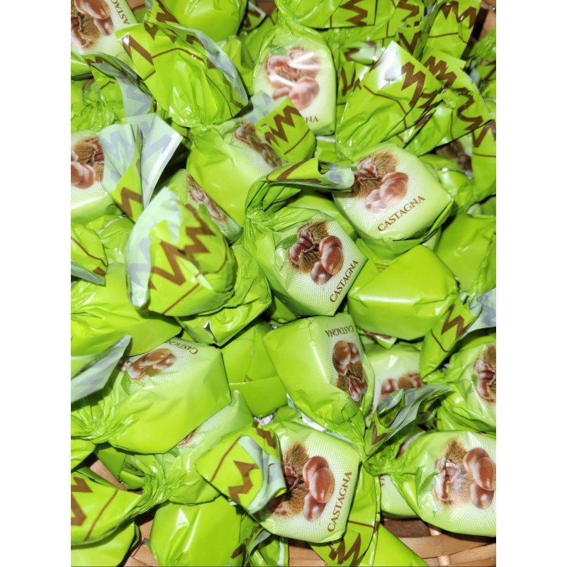 Enrobage chocolat noir, intérieur ganache noire avec alcool de chataîgne et crême de marrons