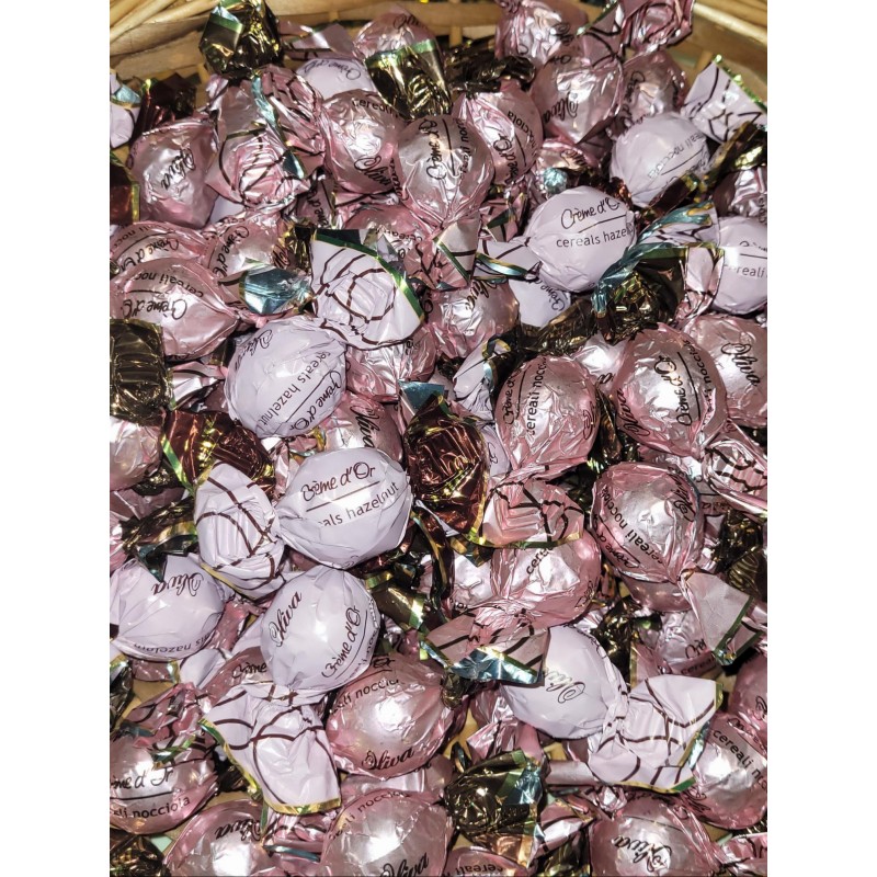 Enrobage chocolat au lait, intérieur chocolat au laitavec céréales et riz soufflé