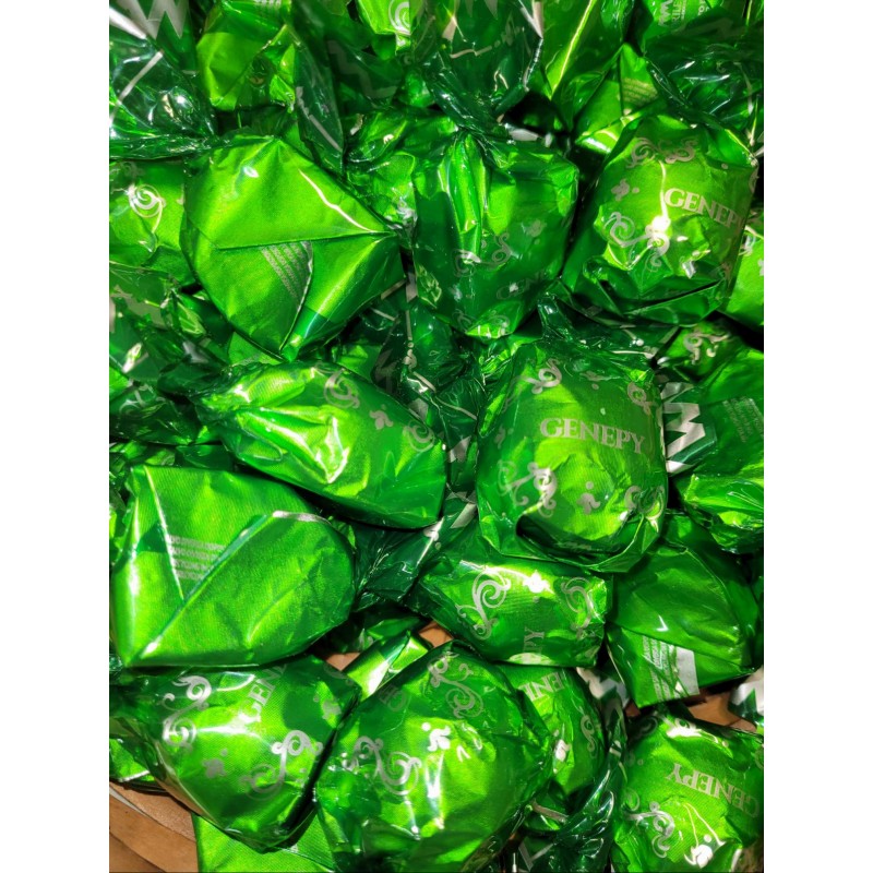 Enrobage chocolat noir, intérieur ganache noire avec alcool de génépi