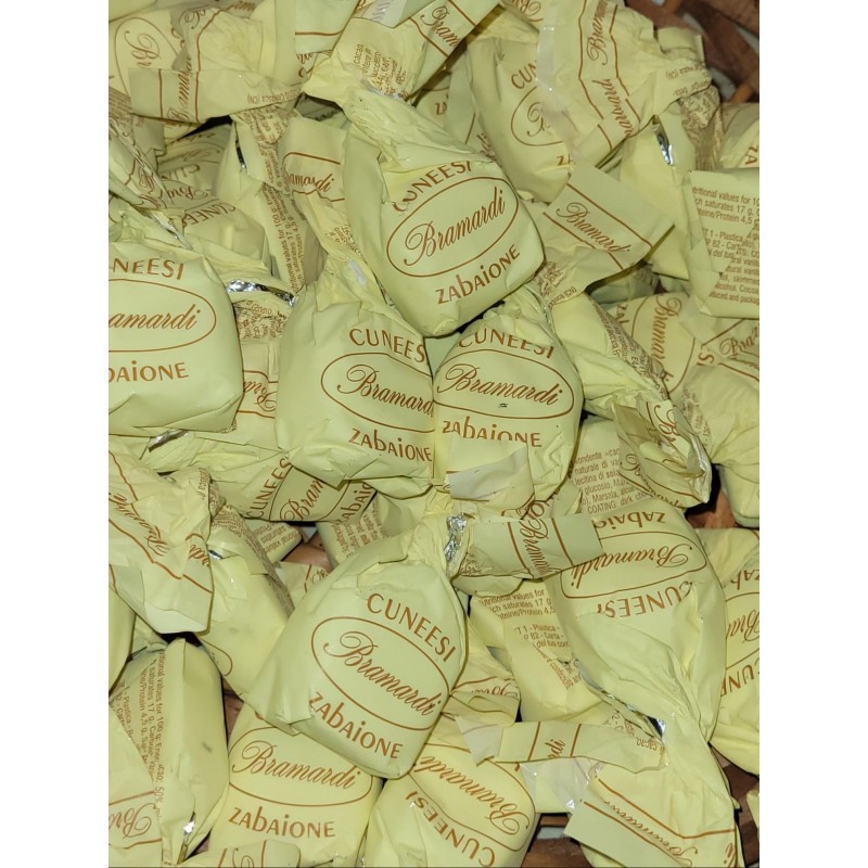 Enrobage chocolat noir, intérieur crème au Marsala (vin cuit aux amandes et aux oeufs)