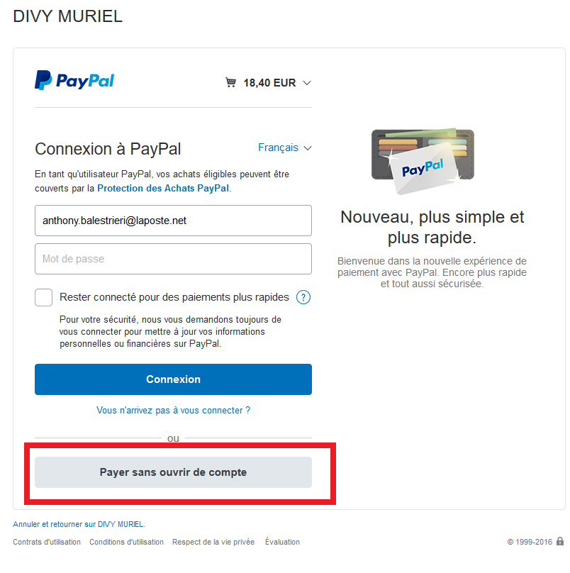 Dans la page suivante, cliquez sur PAYER SANS OUVRIR DE COMPTE